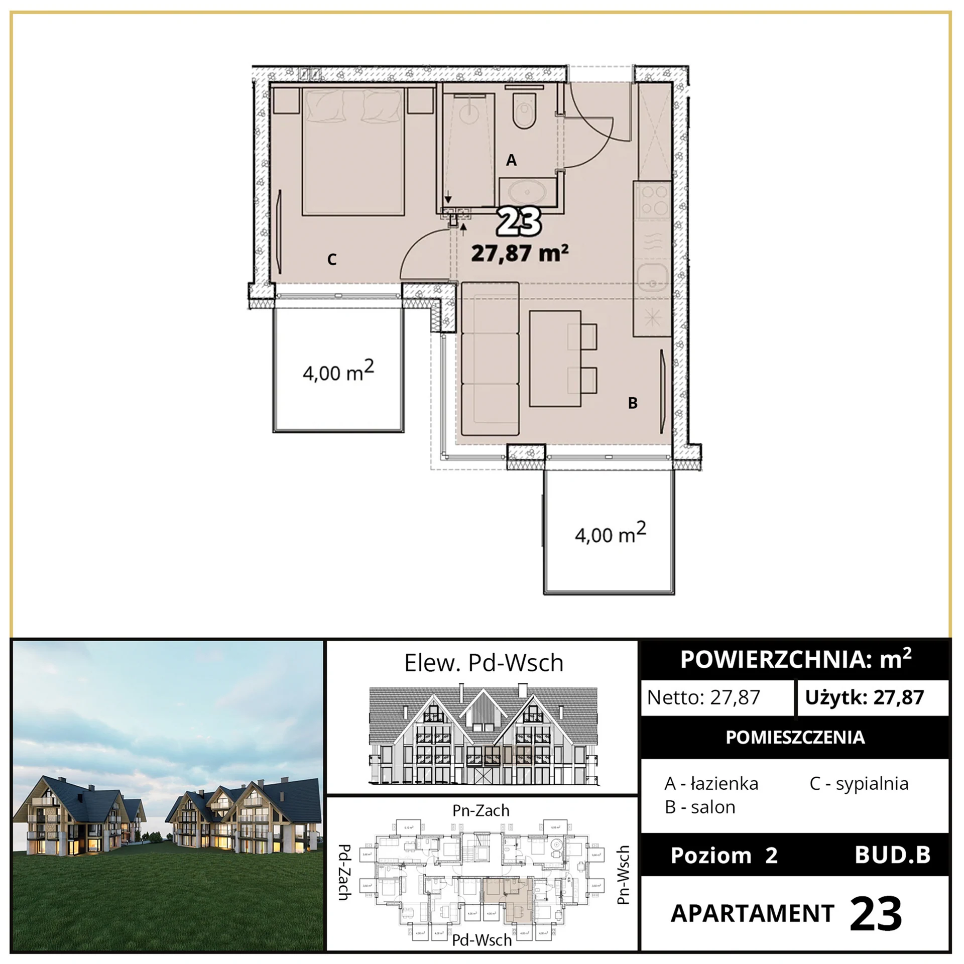Pow. użytkowa: 27,87 m2
